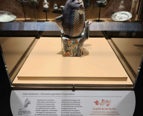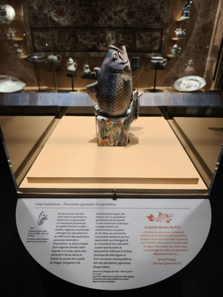 L’exposition « De la carpe aux Merlus, Nouveaux trésors et regards d’aujourd’hui » célèbre l’enrichissement des collections grâce à des dons et acquisitions récentes. Objets rares et métissés – porcelaines, armes, meubles – témoignent des échanges culturels entre l’Europe et l’Asie aux XVIIe et XVIIIe siècles. Pour un regard original, le musée a invité le Football Club de Lorient à sélectionner des œuvres coups de cœur en résonance avec leur parcours.