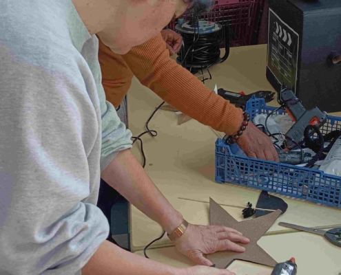 Durant les activités, des habitants du quartier sont venus nous prêter main forte afin de fabriquer les décorations printanières tout en profitant d’un moment de partage autour d’un café et de gâteaux.