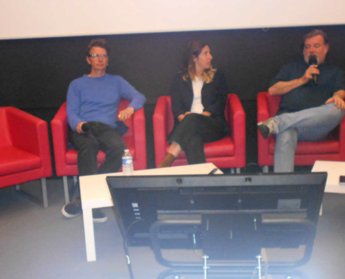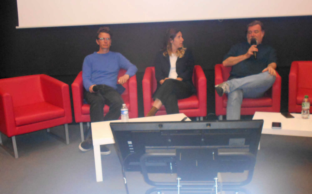 Pour cette conférence qui s’est déroulée dimanche dernier à la base à 15h, la salle n’était pas comble, peut-être en raison des conditions météorologiques. Beaucoup des personnes présentes connaissaient déjà les expéditions Tara. Les trois intervenants étaient Clémentine Moulin, directrice des expéditions, Éric Pelletier, chercheur en génomique environnementale, et Pierre Galand, chercheur en écologie microbienne au CNRS.