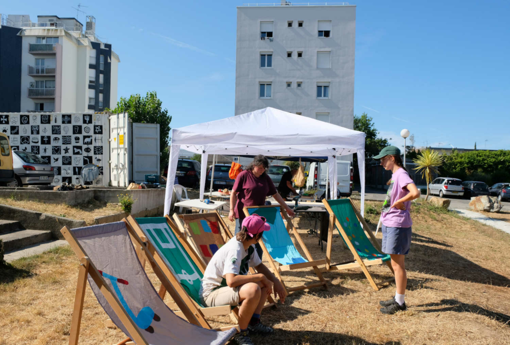 Du mercredi 15 au vendredi 18 juillet 2025, un atelier créatif et participatif a attiré l’attention des passants du quartier Frébault. Pour l’occasion, Jade, Mélanie et Solène sont venues partager leurs savoir-faire avec les habitants afin de créer des mobiliers et des accessoires « Do It Yourself » (DIY).