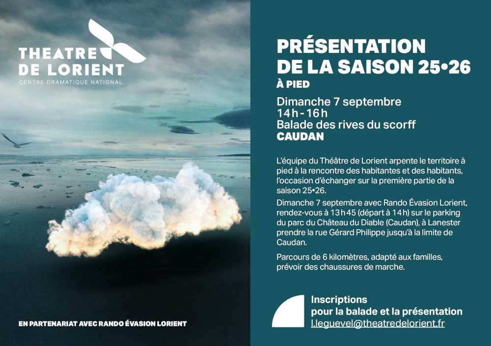 Le Théâtre de Lorient est heureux de vous convier à la première présentation de saison / randonnée en partenariat avec Rando Evasion Lorient pour vous parler de la première partie cette nouvelle saison 25-26 au Théâtre de Lorient.