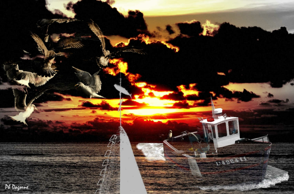 Il exposait cet été cette série initulée Poésimage au centre social du Polygone pendant le Parcours photographique des centres sociaux lorientais. Pour cette exposition, ses thématiques sont la mer, la lumière, le paysage groisillon : une poésie qui saisit l’âme de l’île à travers ses instants visuels (phare, dunes, villages, atmosphères marines).