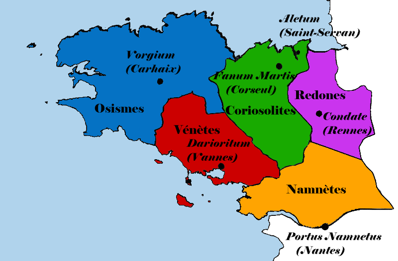 Avant l’arrivée des Romains, la Bretagne est habitée par plusieurs peuples celtes, dont les Vénètes dans le Morbihan. Ce sont de bons commerçants et de redoutables marins.