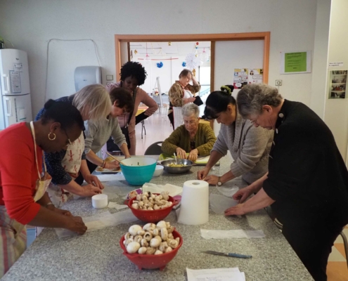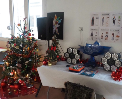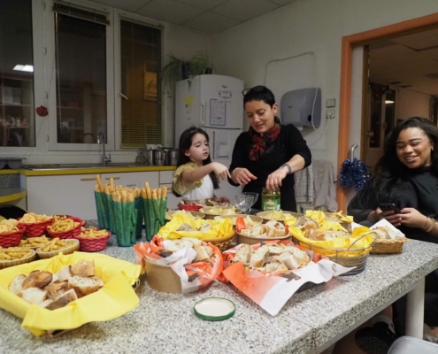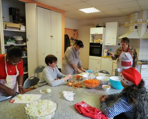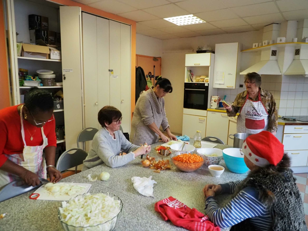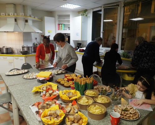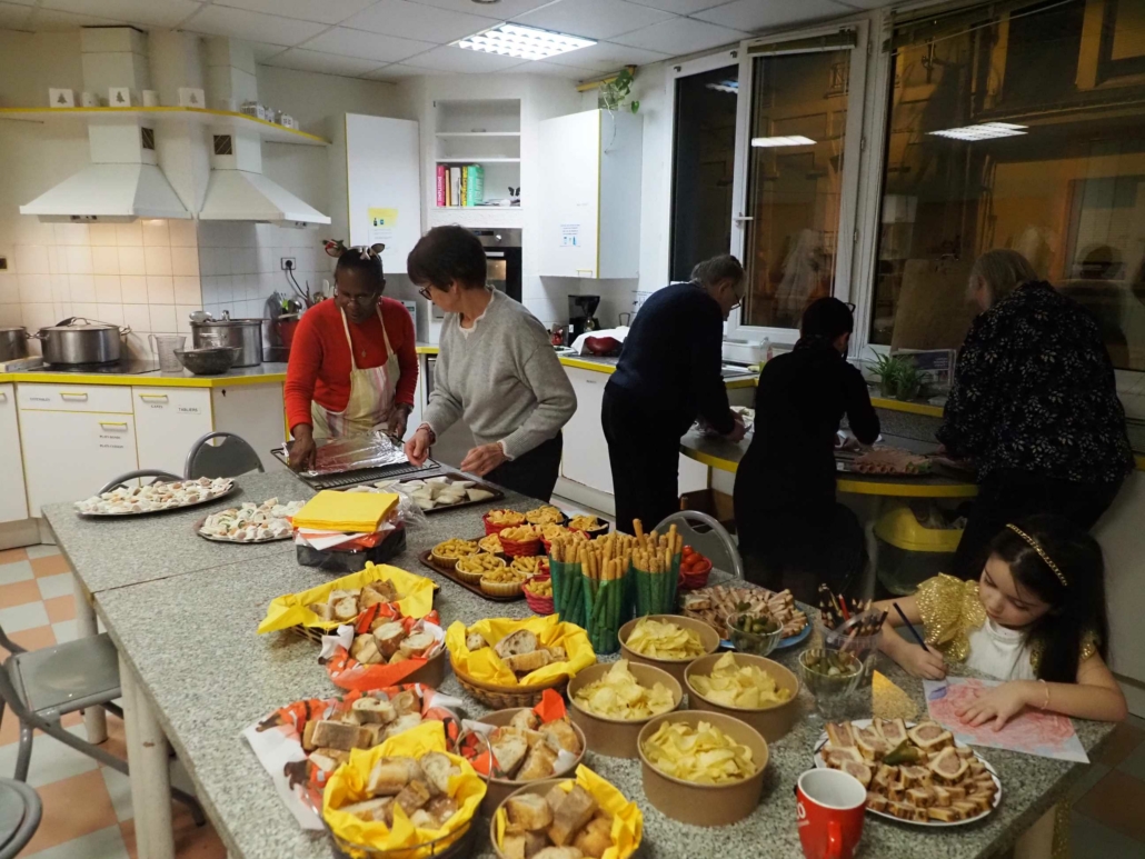 À l’occasion des fêtes de Noël, le centre social PLL se prépare : mise en place de la salle et installation des décorations. En cuisine, tout le monde s’active. Les plats se préparent tout au long de la journée et les cheffes cuisinières s’affairent avec courage pour régaler les participants à la soirée du 19/12/2025. En fin de soirée, chacun repart chez soi satisfait après ce repas à thème et un jeu musical intergénérationnel animé par Fabien.