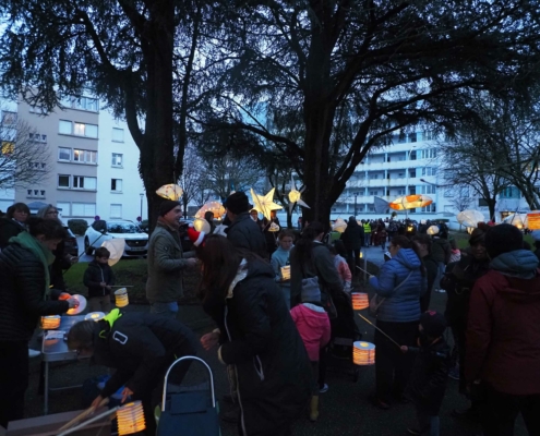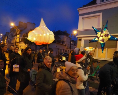 Le 21/12/2025, la ville de Lorient et le centre social ont organisé un défilé de lumières à travers le quartier Polygone‑Frébault, avec stands et spectacles !
