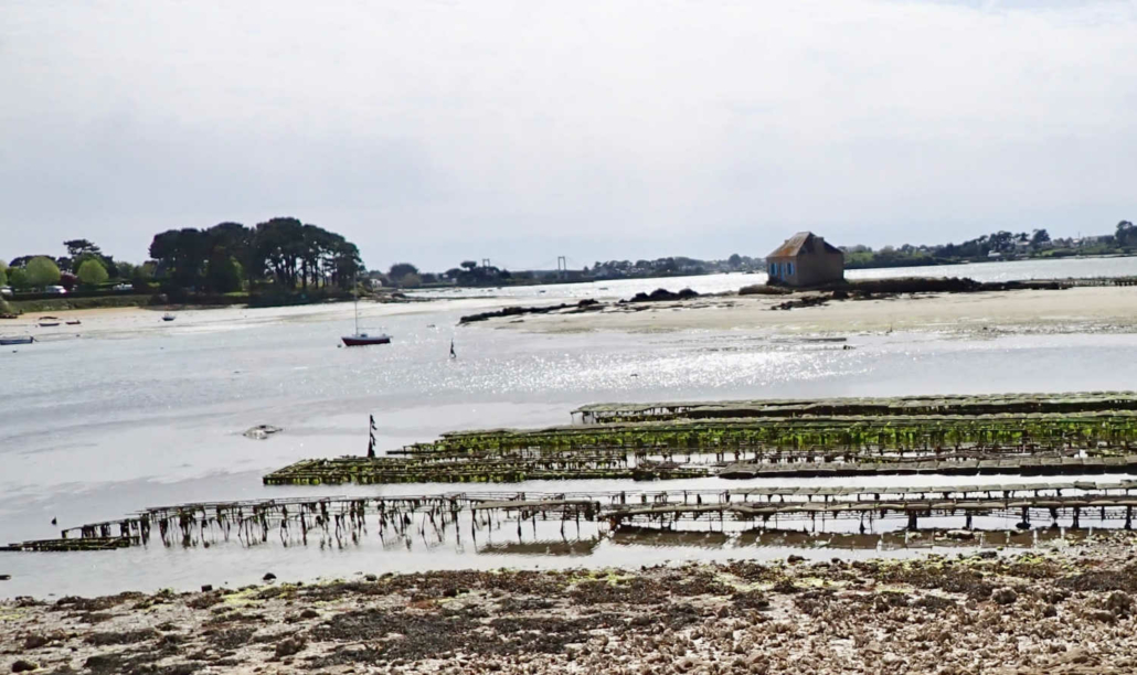 « – La ria est une zone protégée classée Natura 2000 pour assurer la qualité des huîtres. Voyez ces tables métalliques sur lesquelles sont posées des poches contenant des huîtres, au départ des naissains. »