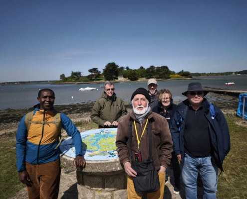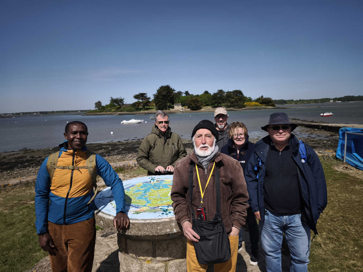Frédéric en fin stratège nous conduit vers une table d’orientation située à la Pointe du Perche en face de l’ile des moines, endroit pas trop fréquenté pour commencer notre périple. Pour la suite, craint-il de l’affluence et des embouteillages qui pourraient nous perturber ?