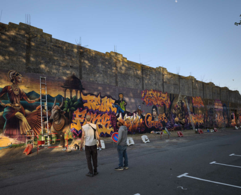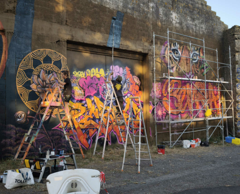 Suite de l’aventure à Saint Cado.« – ça me fait penser au Mont Saint Michel » mentionne Loïc. La fréquentation, le chemin entre deux eaux pour accéder au lieu, le caractère religieux permettent effectivement de faire le rapprochement, ça ne gâte en rien notre plaisir. Daniel préférerait toutefois une autre couleur que le blanc pour le pignon de la célèbre maison qu’il nous désigne. Tout est perfectible. Frédéric nous prévient : « – comme sur le chemin, il y a de nombreux panneaux explicatifs, je n’apporterais que des compléments. Arrêtons-nous ici près de ces parcs à huîtres» décide-t-il.