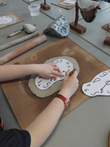 À partir d’argile sèche modelée, les enfants et leurs parents ont mis la main à la pâte pour reproduire la difformité et l’originalité des horloges imaginaires de Dalí.
