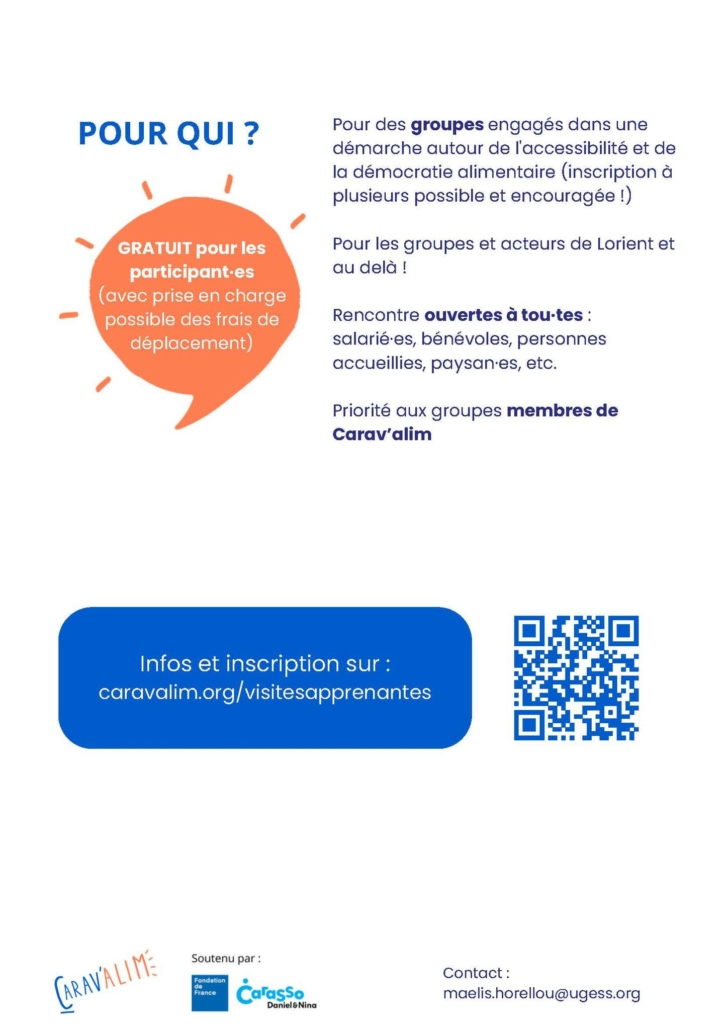 L’inscription est gratuite et ouverte à toutes et tous, via le site de Caravalim : https://caravalim.org/?visiteapprenantelorient